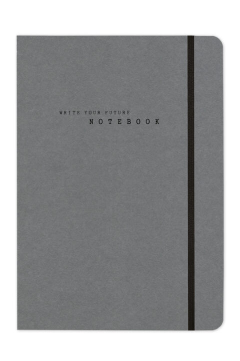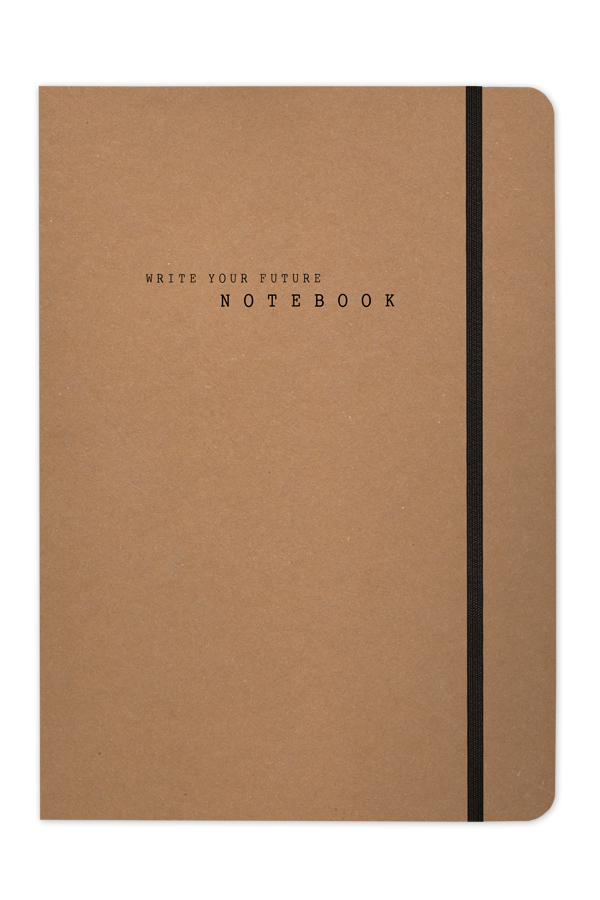 Diary with cover of recycled board, elastic closure, rounded book corners and inner pocket. Hand binding.