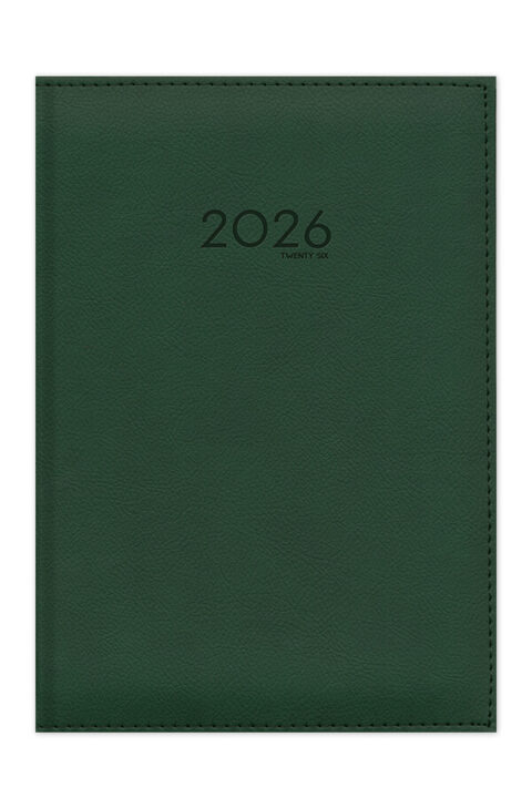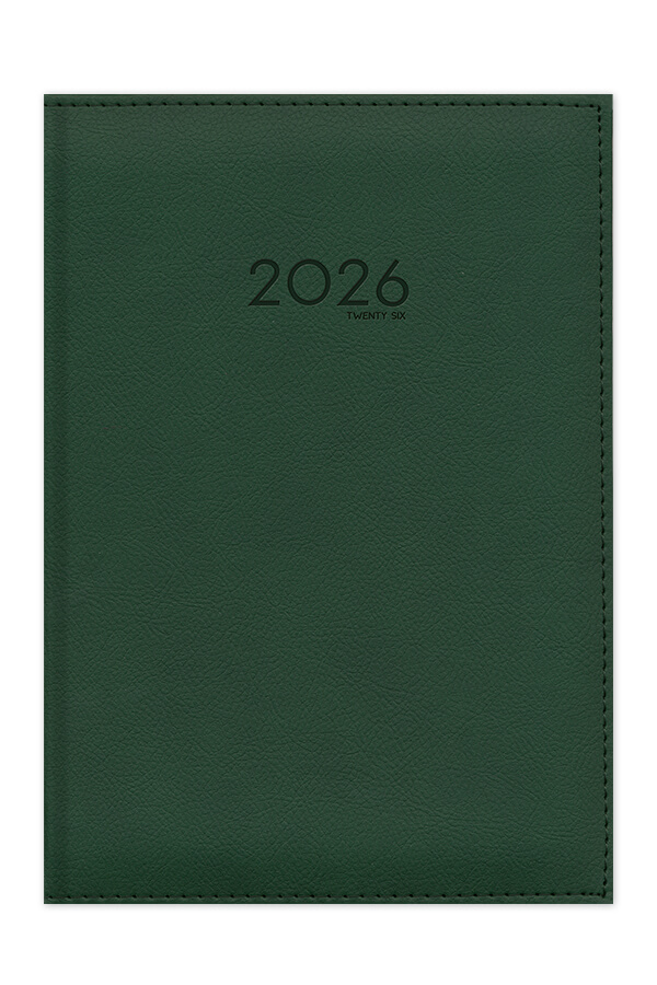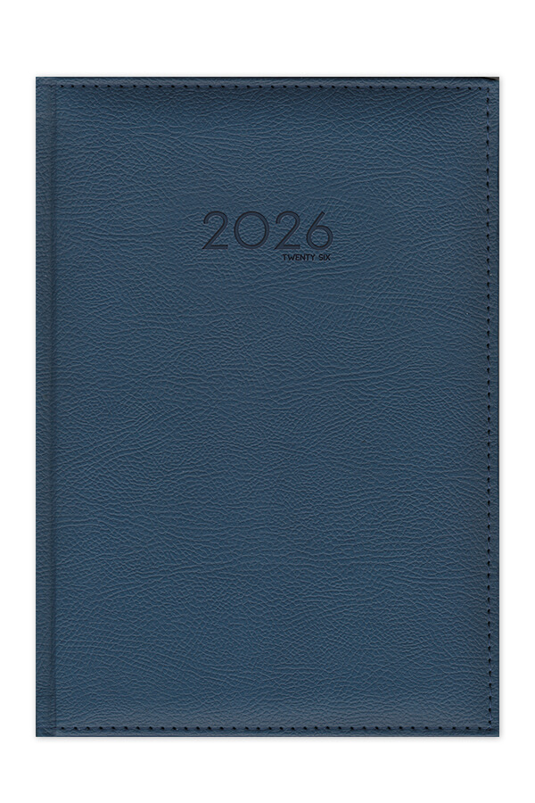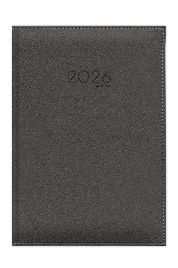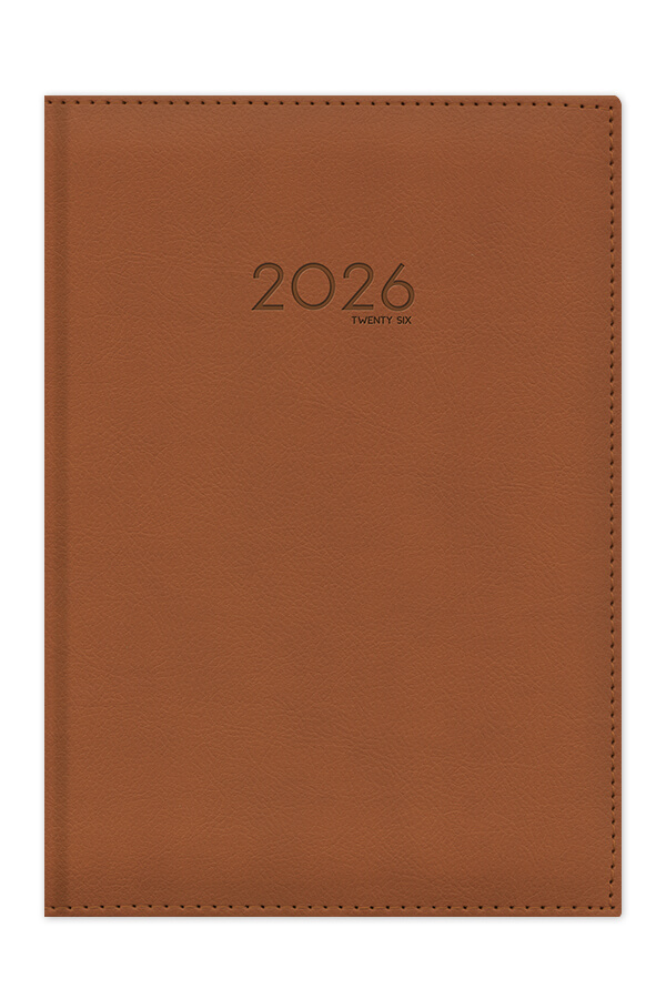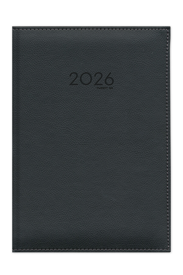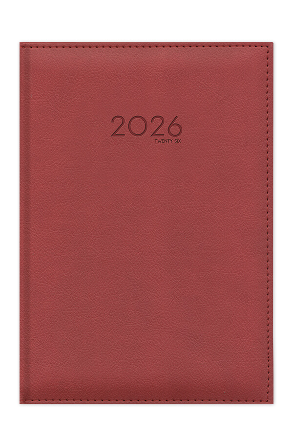 Diary with leather look texture and seam. Hard binding with foam and pointed book corners.