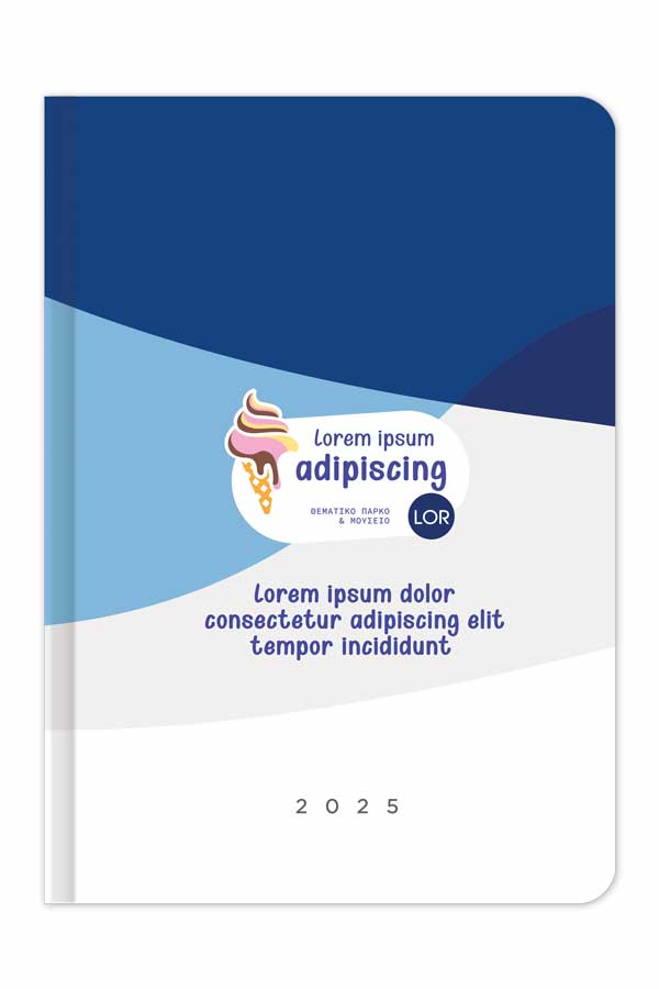 Diary with customized design and full printed cover. Hardcover with rounded book corners.