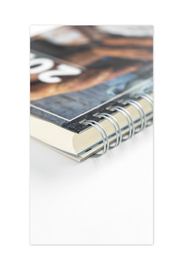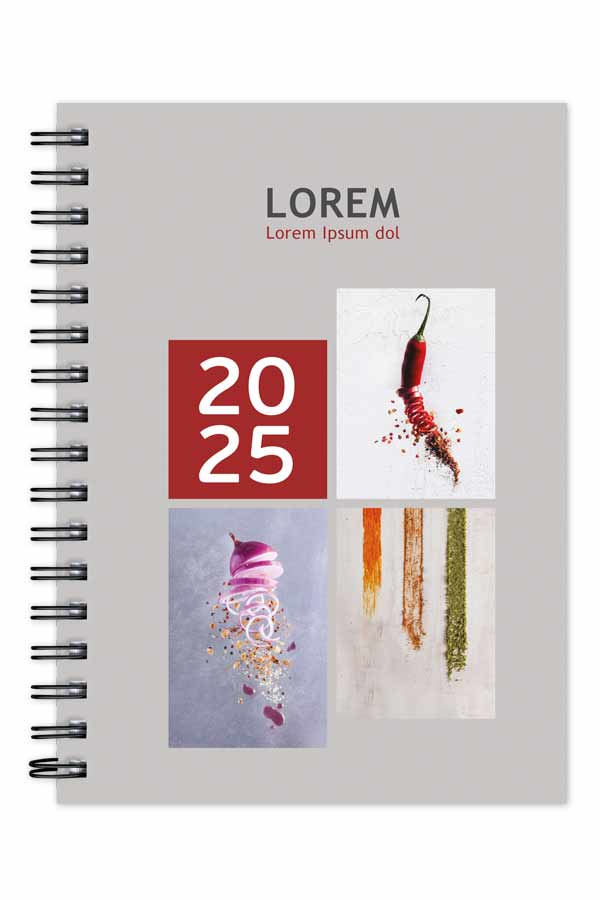 Diary with customized design and full printed cover. Spiral binding with pointed book corners.