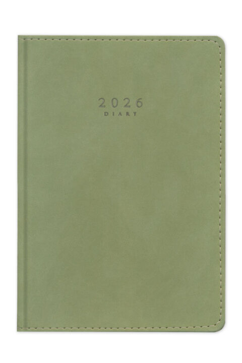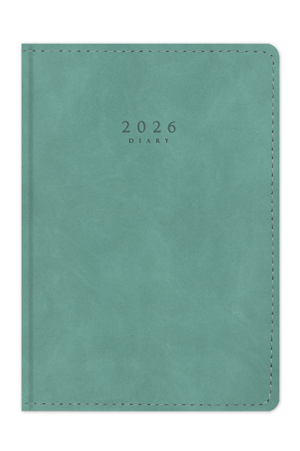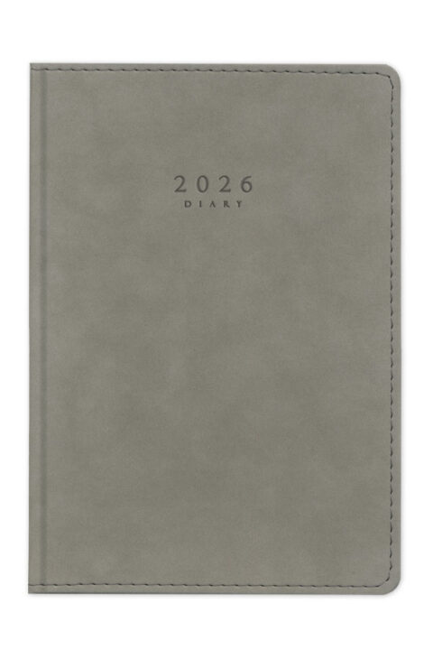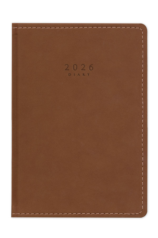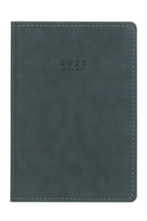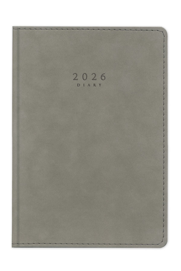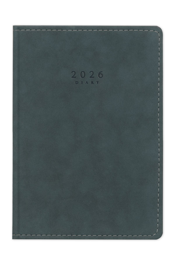 Diary with suede texture, seam and hard cover. Hard binding and rounded book corners.