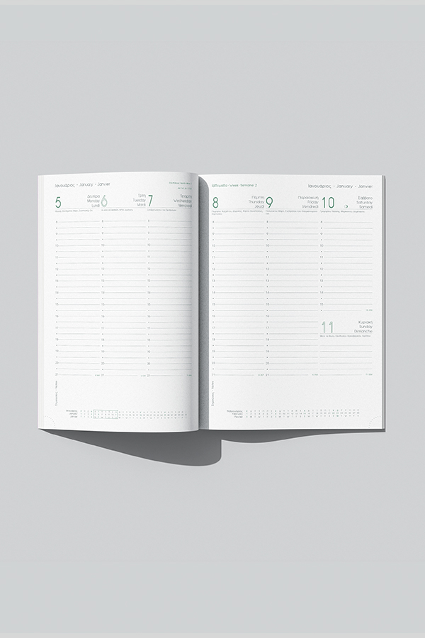 Εβδομαδιαίο ημερολόγιο 17Χ25 με κάθετη διάταξη σε λευκό χαρτί.