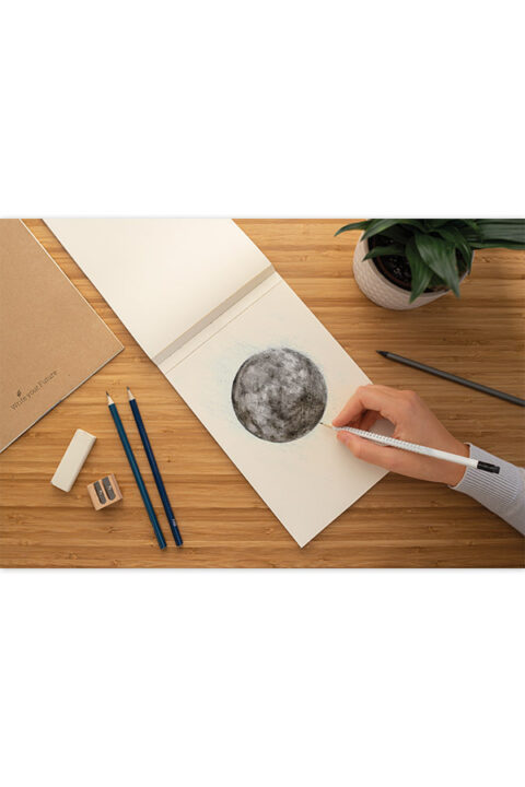Μπλοκ σχεδίου blank. Εξώφυλλο με χαρτόνι και μονόχρωμη θερμοτυπία. Βιβλιοδεσία: κλωστοραφή με έκθετη ράχη και περιστροφή 360 μοίρες.