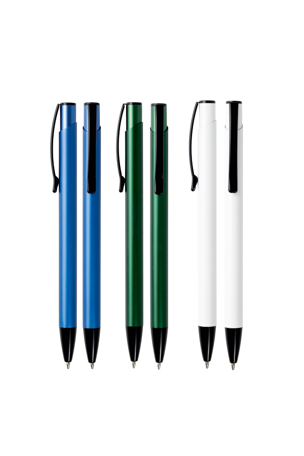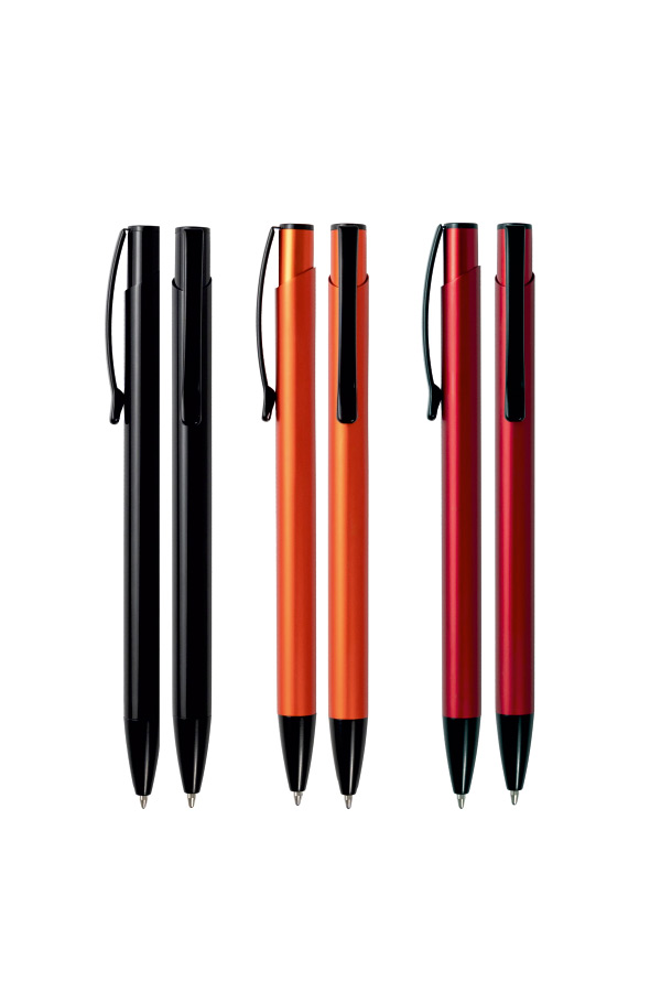 Στυλό με ελατήριο, σε 6 διαφορετικά χρώματα, με μαύρες λεπτομέρειες με βελούδινη μαύρη θήκη.