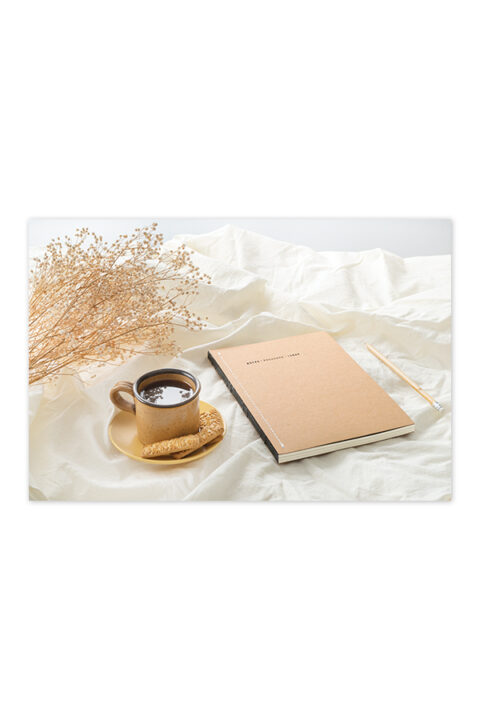 Σημειωματάριο με χειροποίητο, ανακυκλωμένο εξώφυλλο και διακοσμητική ραφή. Βιβλιοδεσία: κλωστοραφή με έκθετη ράχη και περιστροφή 360 μοίρες.