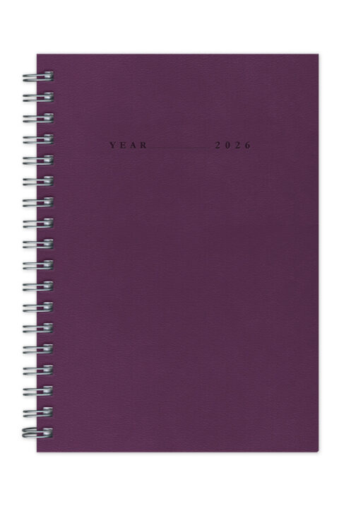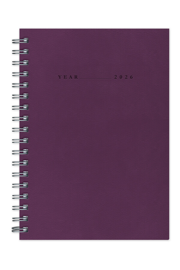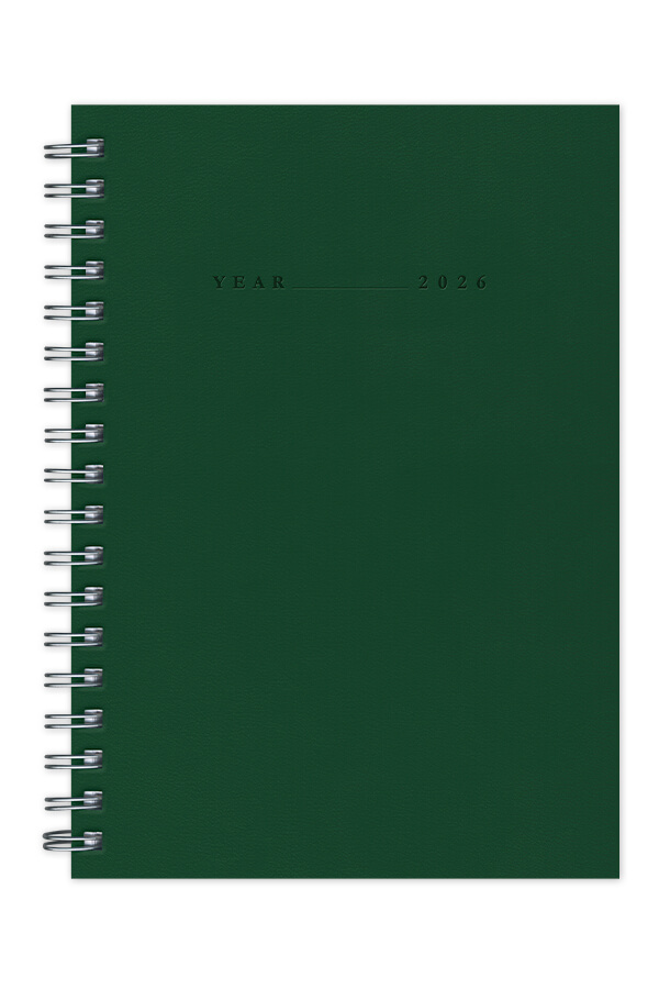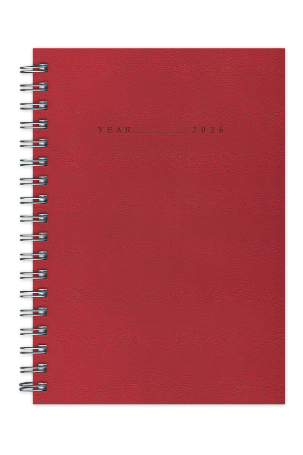 Πυρογραφική δερματίνη με διακριτική ανάγλυφη υφή. Σκληρό κάλυμμα, διπλό spiral και ορθές γωνίες.