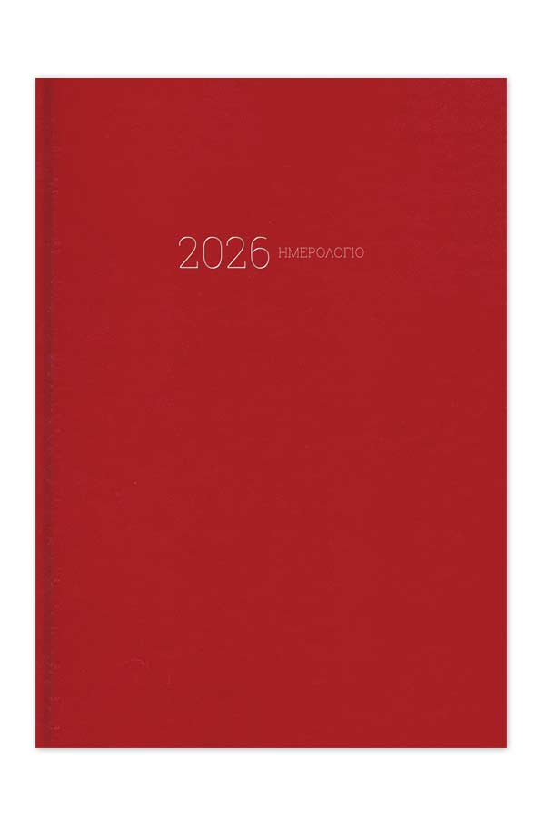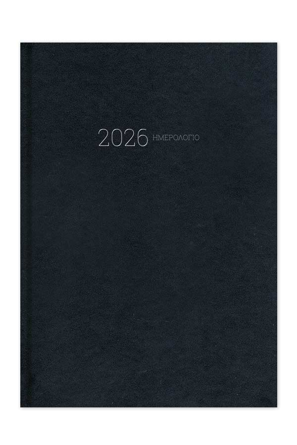Ημερολόγιο με λεία δερματίνη και γυαλιστερή υφή, με εκτύπωση ασημοτυπίας.