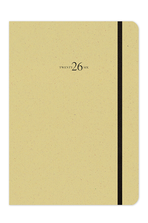 Βιώσιμο οικολογικό χαρτόνι από οργανικά υπολείμματα φρούτων και καρπών. Ιδιαίτερη υφή και εύκαμπτη βιβλιοδεσία με λαστιχάκι και φάκελο. Μια επιλογή που συμβάλλει ουσιαστικά στη μείωση του αποτυπώματος άνθρακα.